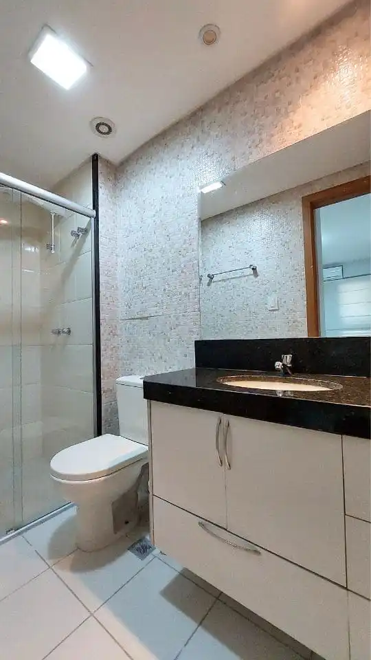 Banheiro suíte com box, armário na pia, chuveiro; – (RVAPPONTBRI150)
